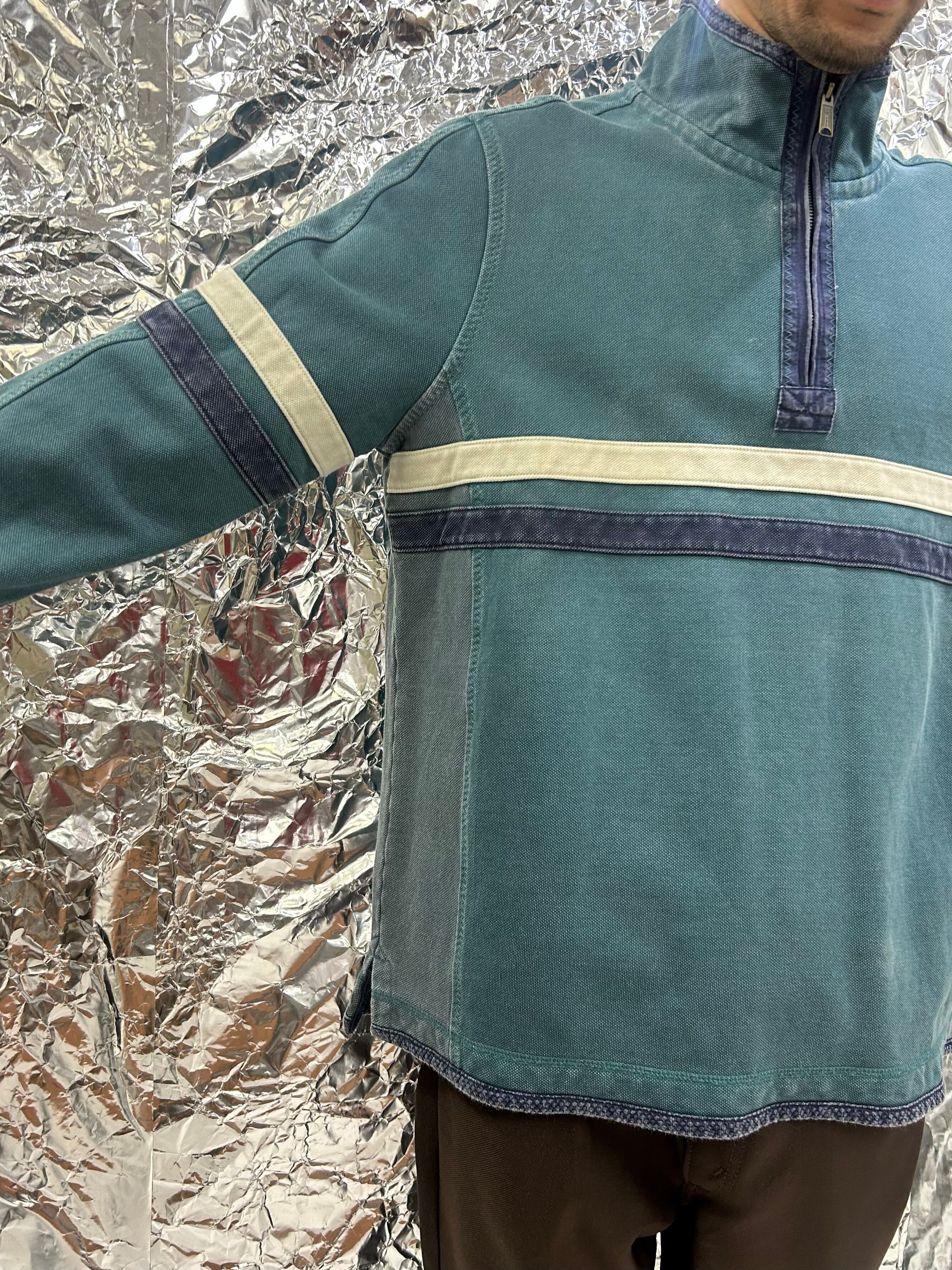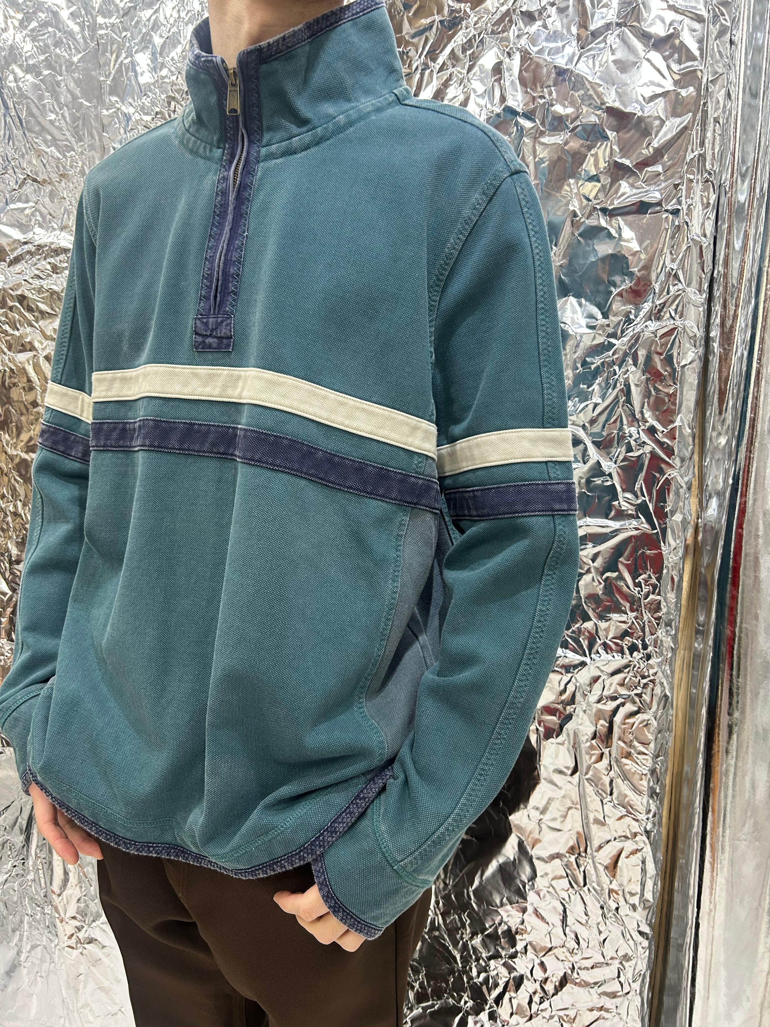 色褪せ具合と野暮ったさが特徴のトップス。肉厚で頑丈な生地になります。裏地は起毛しており夏以外の季節にぴったりです。
