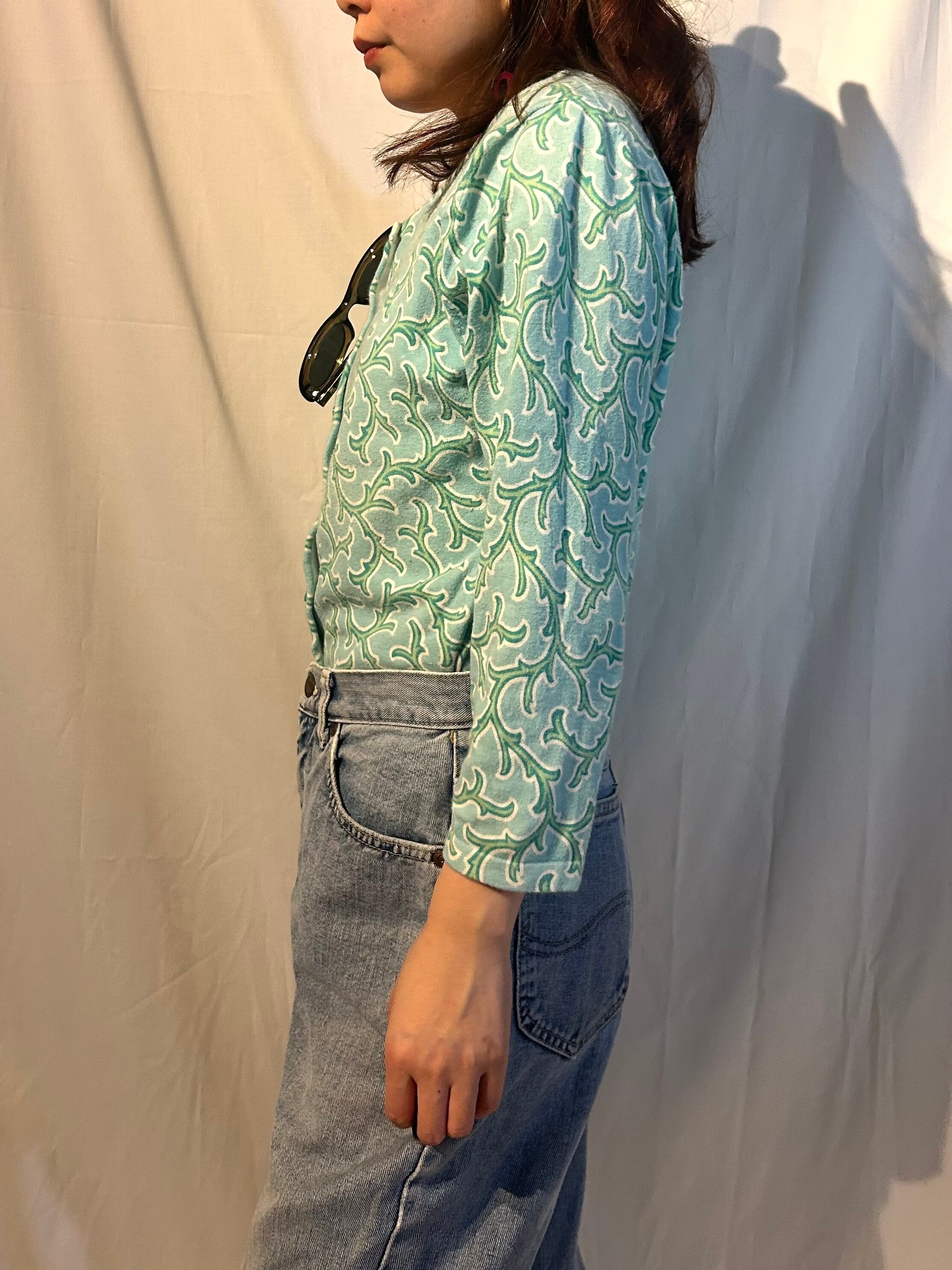身体に馴染む伸縮性から着心地の良さ、どこか気になるイバラ柄。ゴテッとヴィンテージ要素を強めたスタイルでも、ナチュラルに着こなしても映える一着。