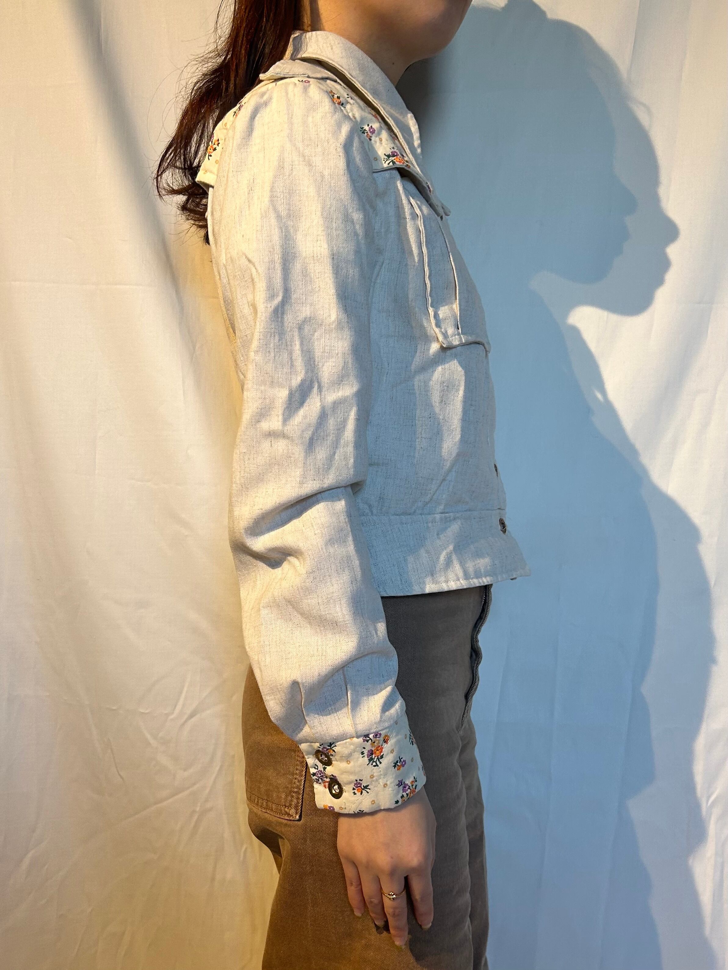 こちらはフェミニンさ香るフラワープリントが特徴的。生成りカラーでスタイルに溶け込みやすく、一枚で主役に。